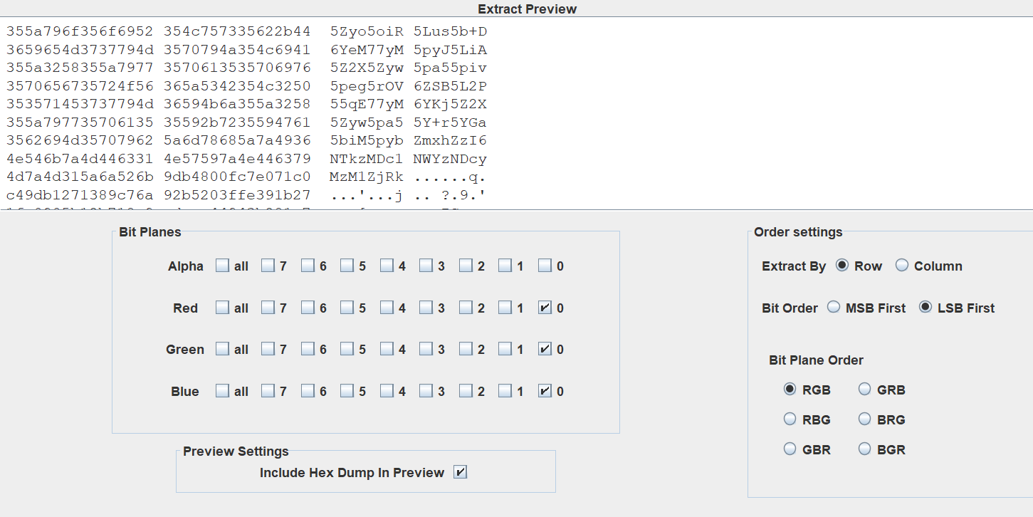 - 第二段,LSB隐写,RGB最低位,打开Stegsolve: