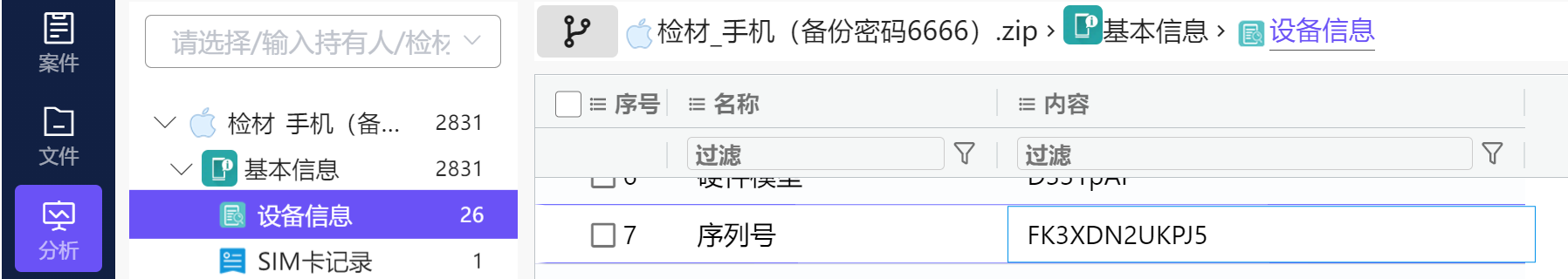 1.写出苹果手机的序列号是多少?(答案格式:大小写与实际需一致)