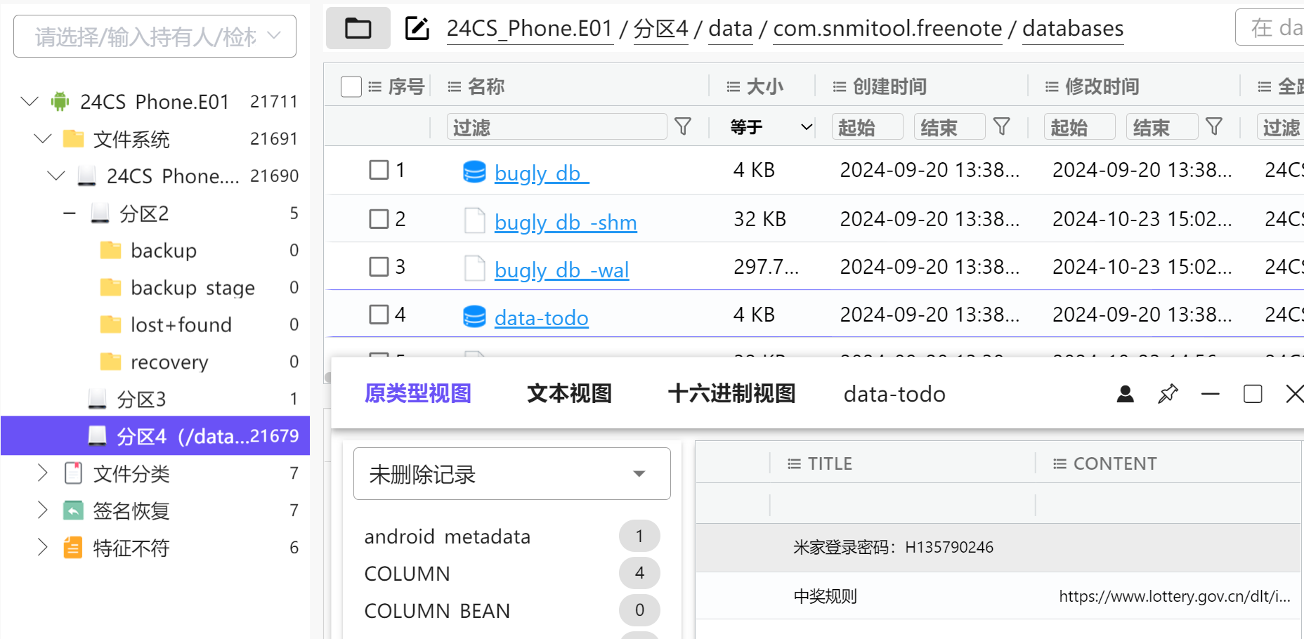 答案很偏。最后是在备忘录软件,查看数据库文件找到的