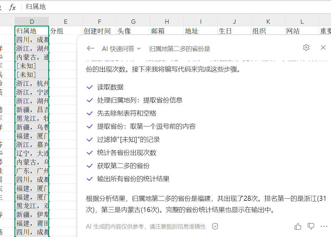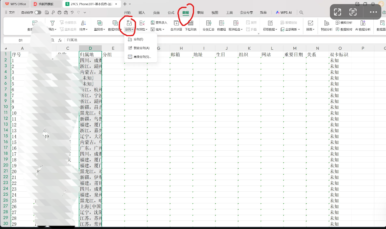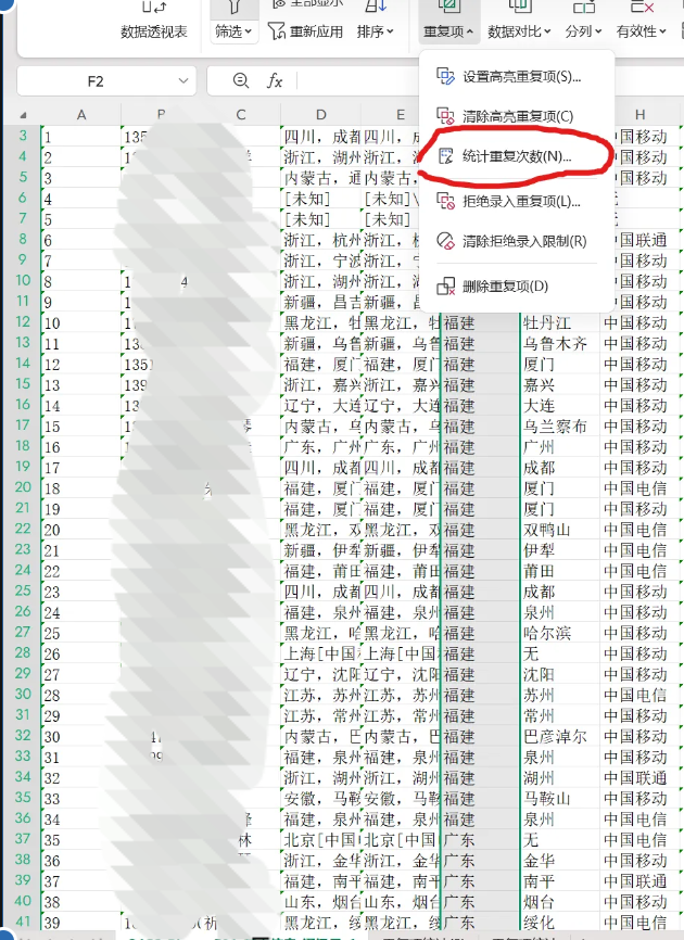 数据少的话直接归属地排序看,但这数据有些庞大。