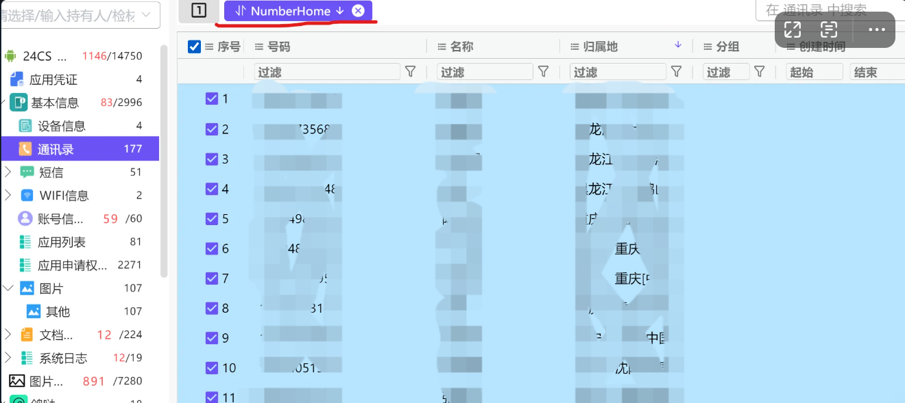 10.对手机镜像进行分析,统计出通讯录号码归属地第二多的省份是?(答案格式:广东)