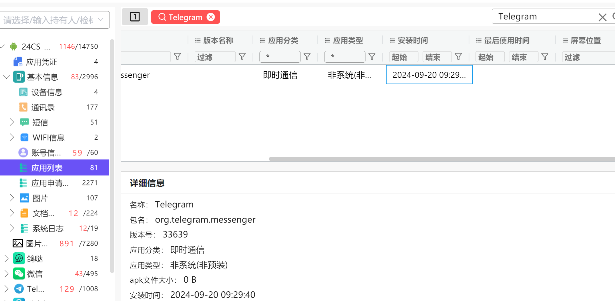 12.找出接收 “葵花宝典 1.doc” 文件使用的应用程序的第一次安装时间为?(答案格式如:1970-01-01 00:00:00)