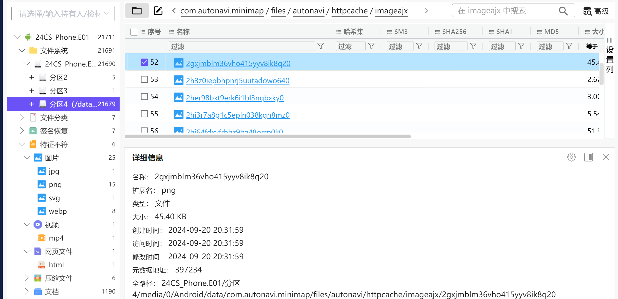 不过我们可以定位一下应该就在这个24CS_Phone.E01/分区4/data/com.autonavi.minimap/files里