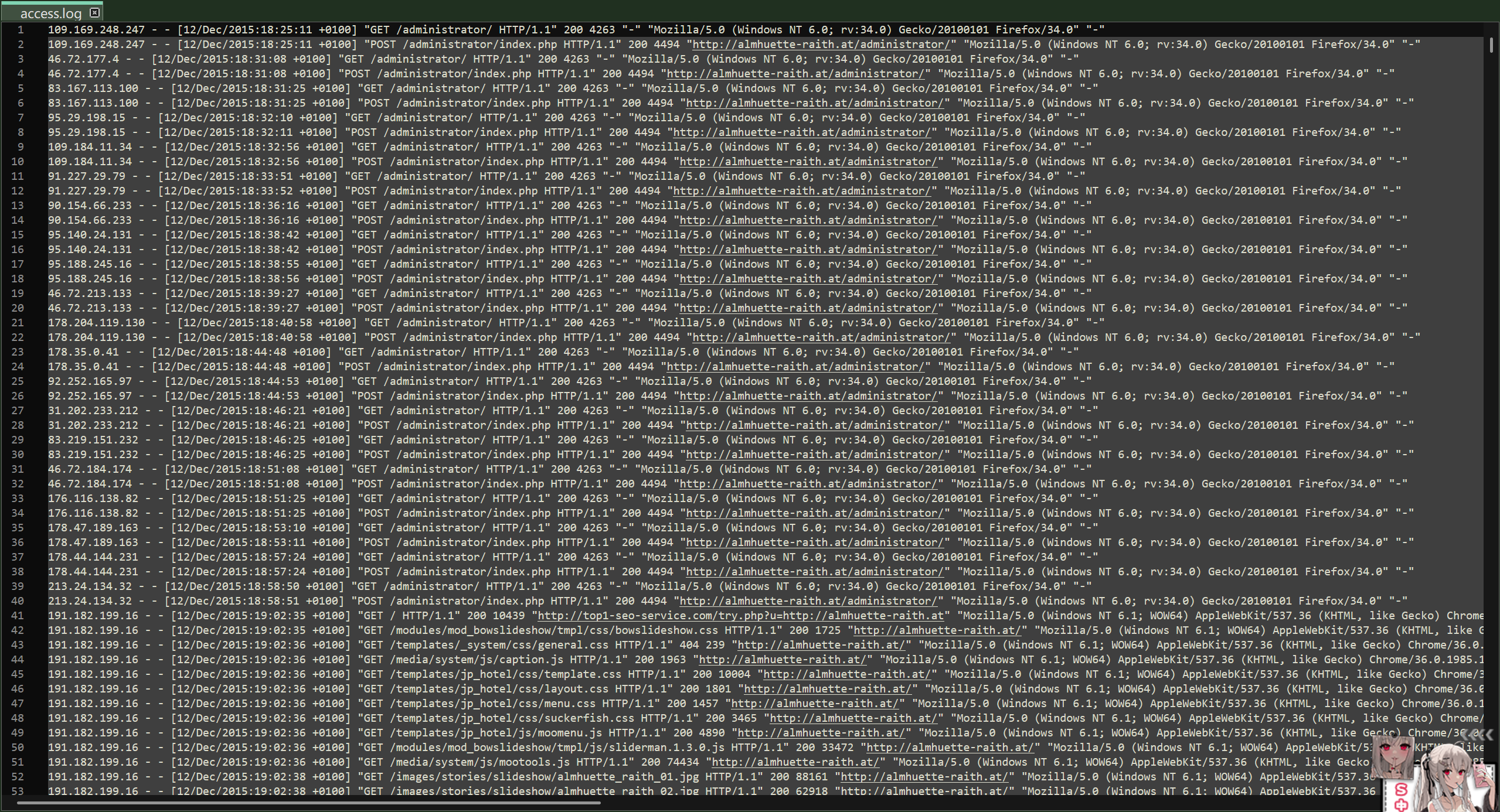 获取2015年访问请求 排名前五的ip地址 格式:flag{ip1,ip2,ip3,ip4,ip5}